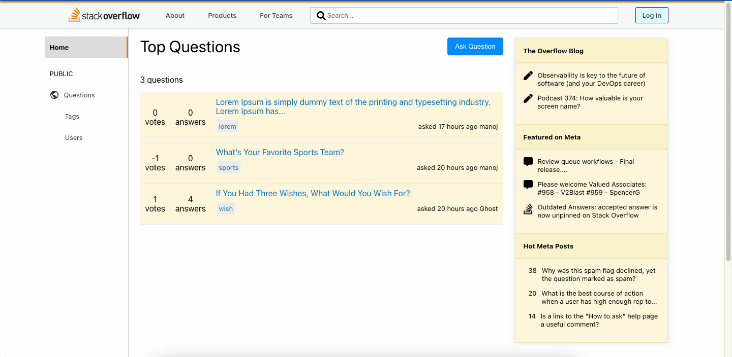 This website is a question Forum and made to look like Stack-OverFlow developed using MERN Stack