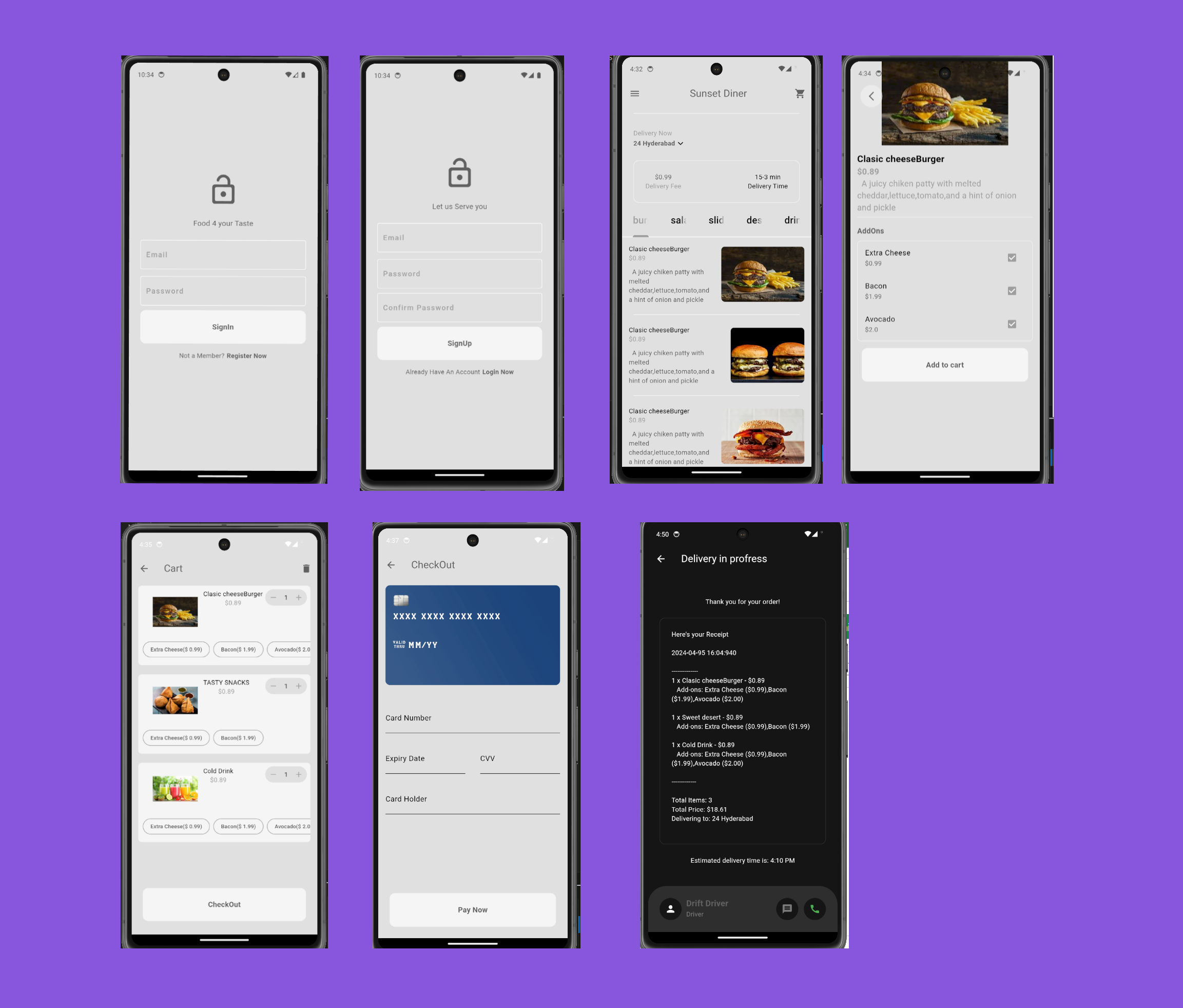 A food delivery app made with Flutter x Firebase pre-built, functional and ready to go out of the box. This app has email authentication and backend already built in. The user can create an account, browse the menu, add to cart, and input card payment details. The order will then be placed and saved into Firebase for real-time live updates. The app will generate a receipt for the user as a summary of the order.